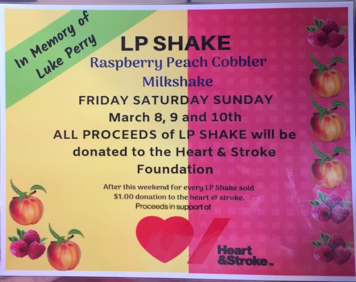 Aus den Einnahmen des LP Milkshake geht 1$ an die Heart&Stroke Foundation.